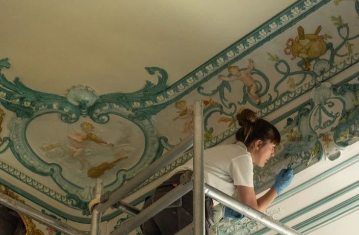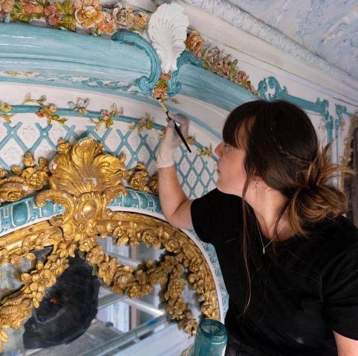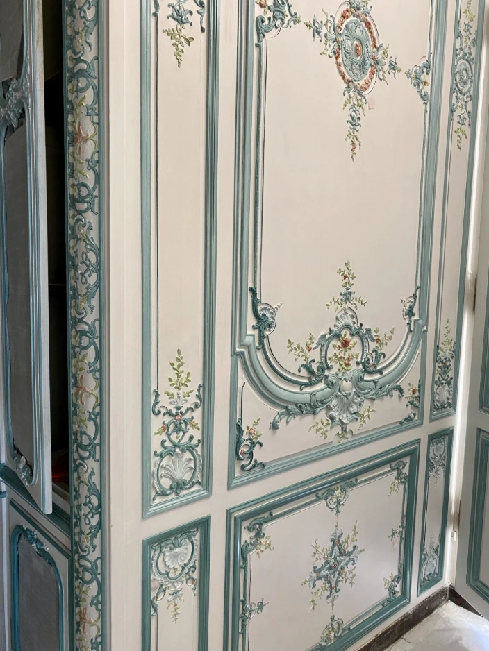 Travaillez au coeur du Château de Versailles reste l'un des chantiers les plus marquants de ma carrière. J'ai eu l'honneur de participer pendant plusieurs mois à la restauration des boiseries et décors peints de la célèbre Bibliothèque du Dauphin, un espace intime datant du XVIIIe siècle.