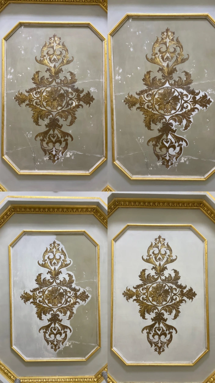Un projet qui allie patience, précision et respect du patrimoine. Travailler sur de tels plafonds est toujours un privilège.