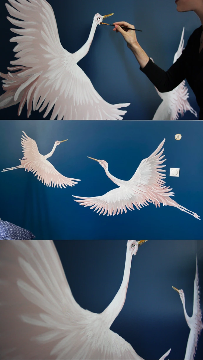 Face au papier peint, la fresque murale peinte à la main offre une véritable expérience artistique et un rendu incomparable. Là où le papier peint propose un motif répétitif (même panoramique), la fresque est unique : elle est pensée sur mesure pour votre mur, votre lumière, votre architecture et vos envies.